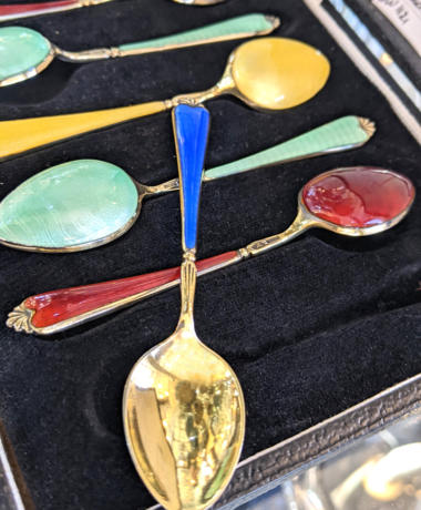 Silver Gilt Enamel Spoons Birmingham 1962