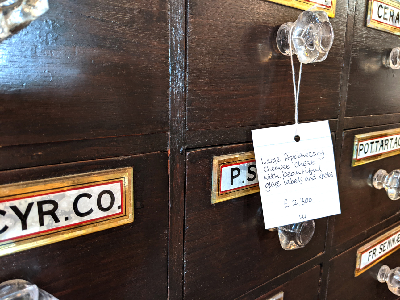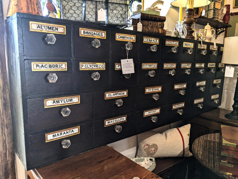 Large Apothecary Chemist Chest with Glass Labels & Knobs