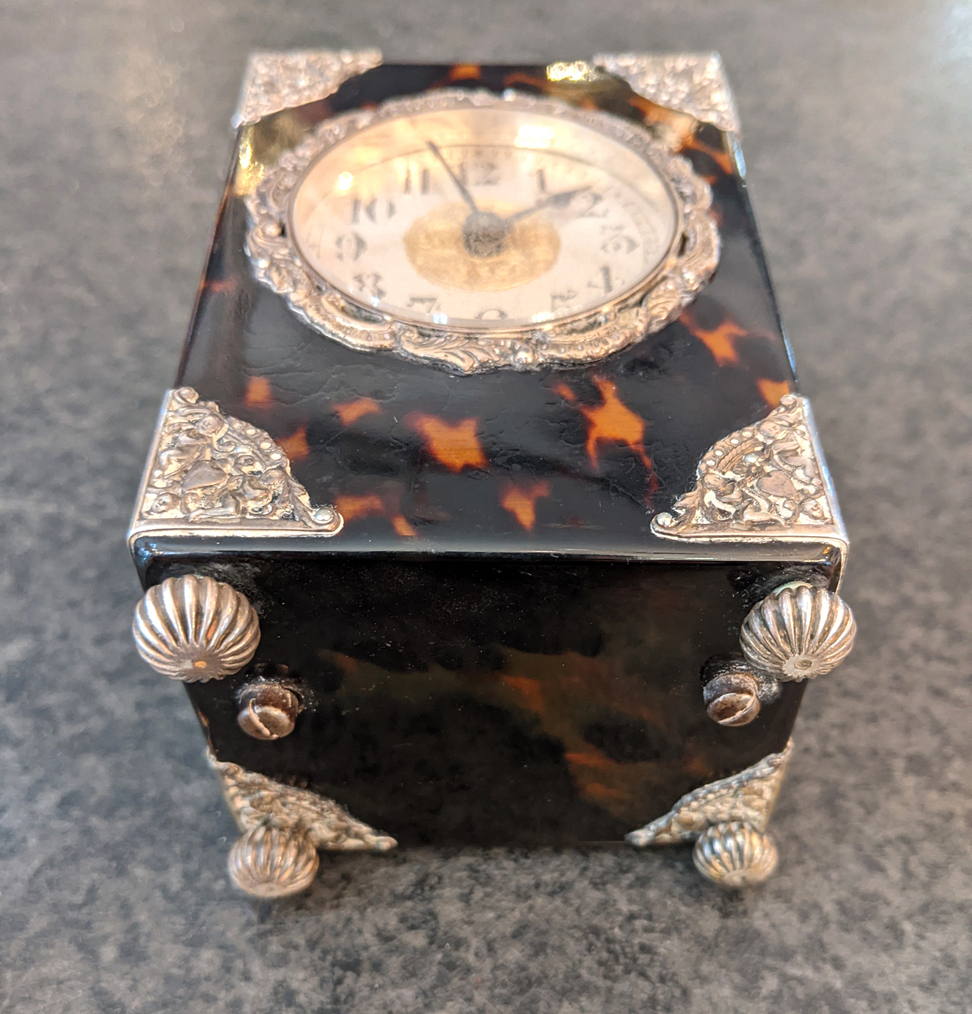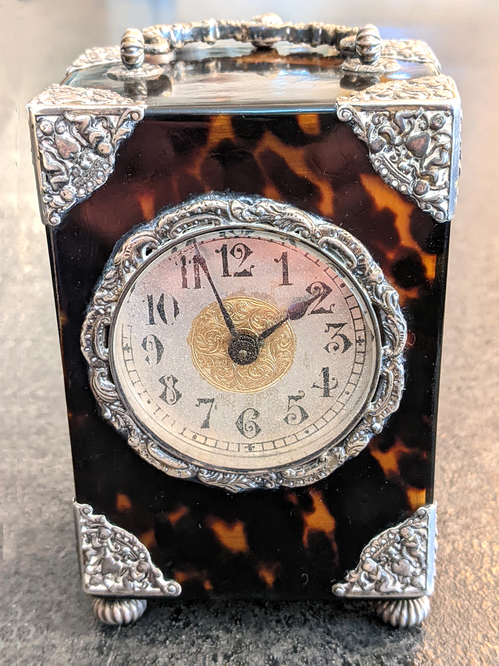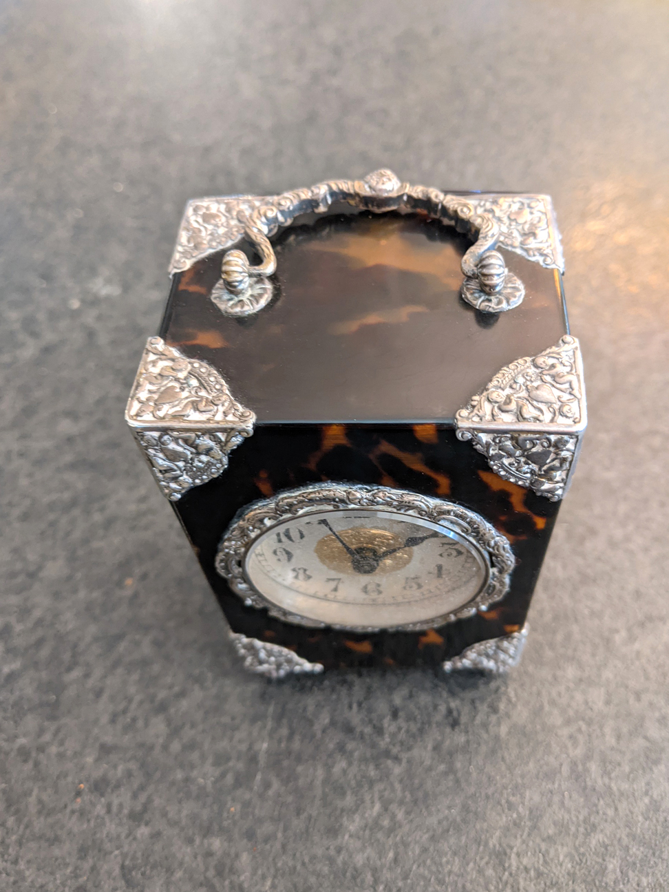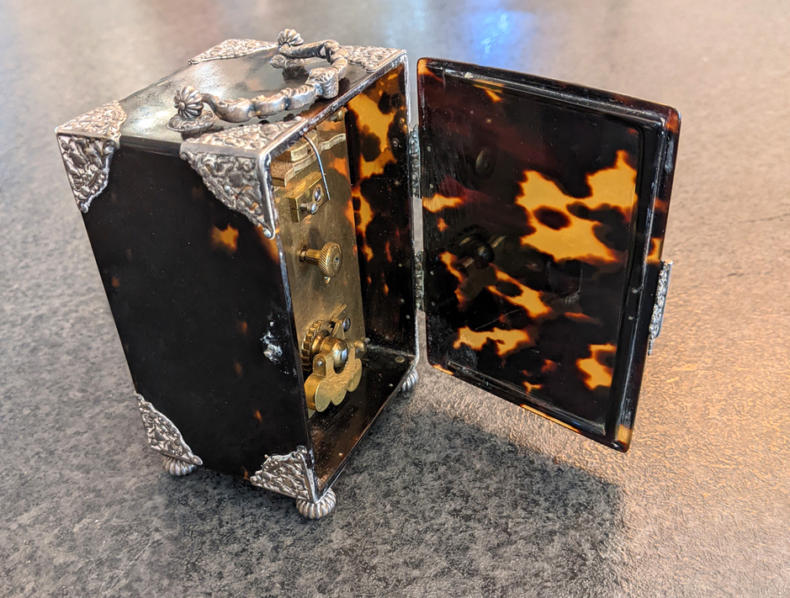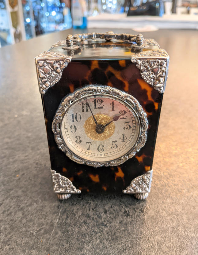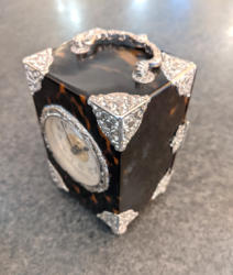 Antique French Silver and Tortoiseshell Carriage Clock C1890's