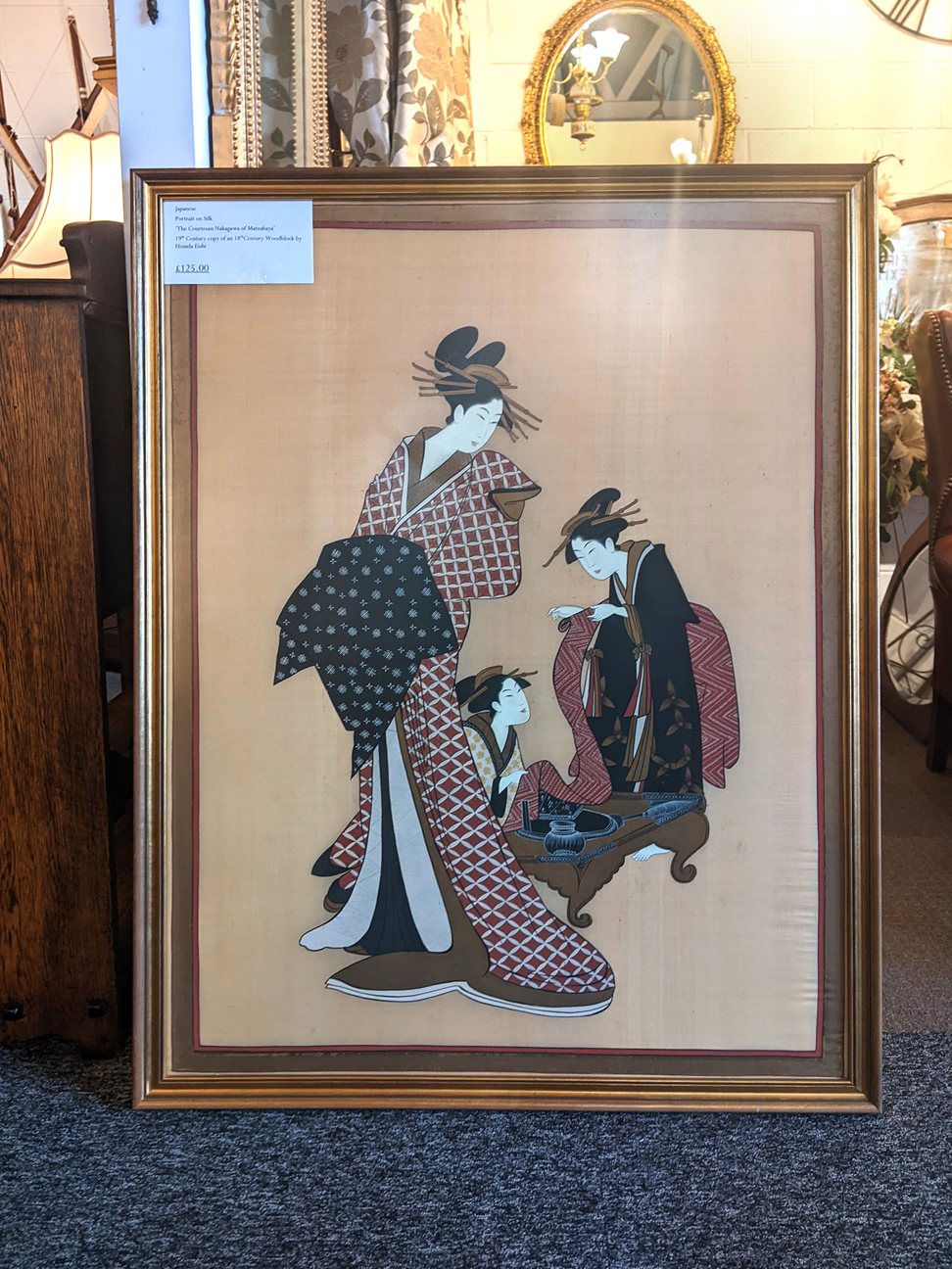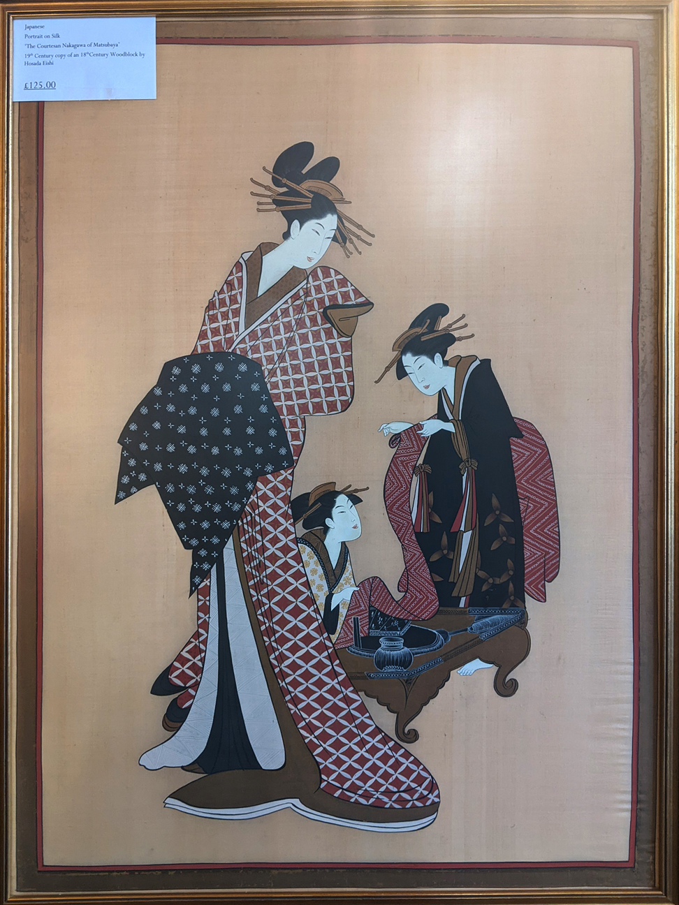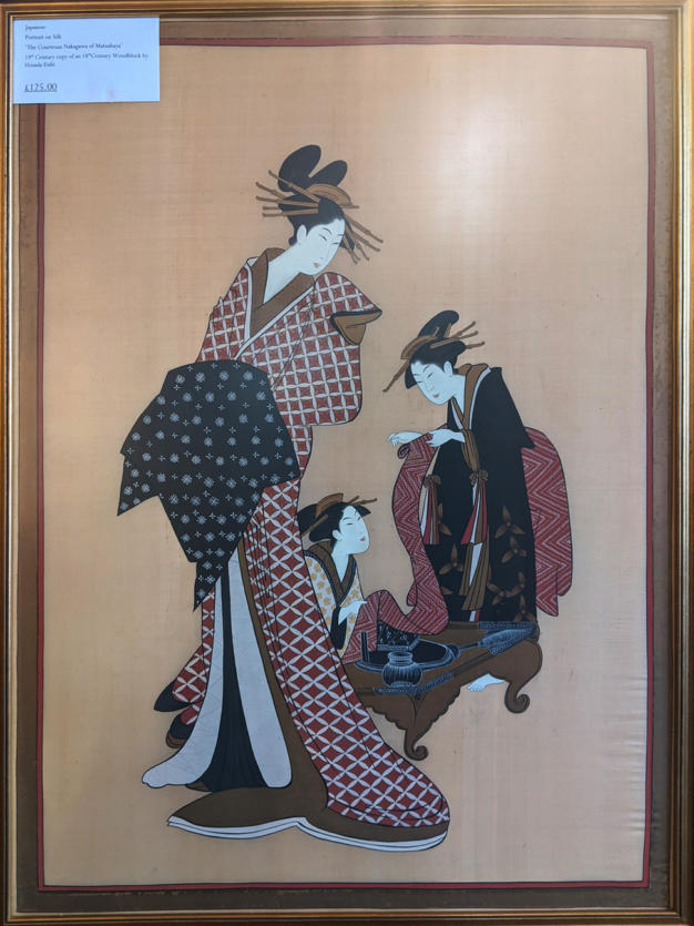 Portrait on Silk "The Courtesan Nakagawa of Matsubaya" 19th Century copy of an 18th Century Woodblock by Eishi