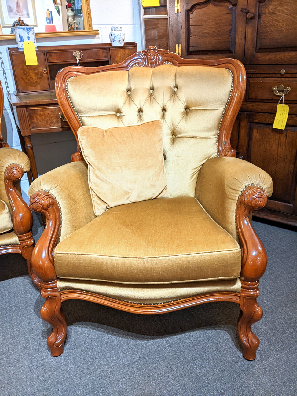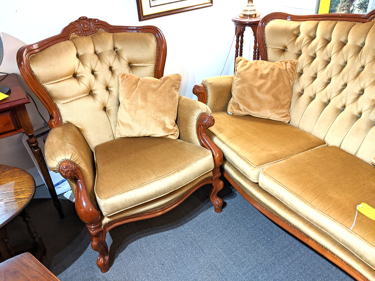 Lovely 2 Seat Sofa & 2 Chairs in Upholstered Gold Velvet
