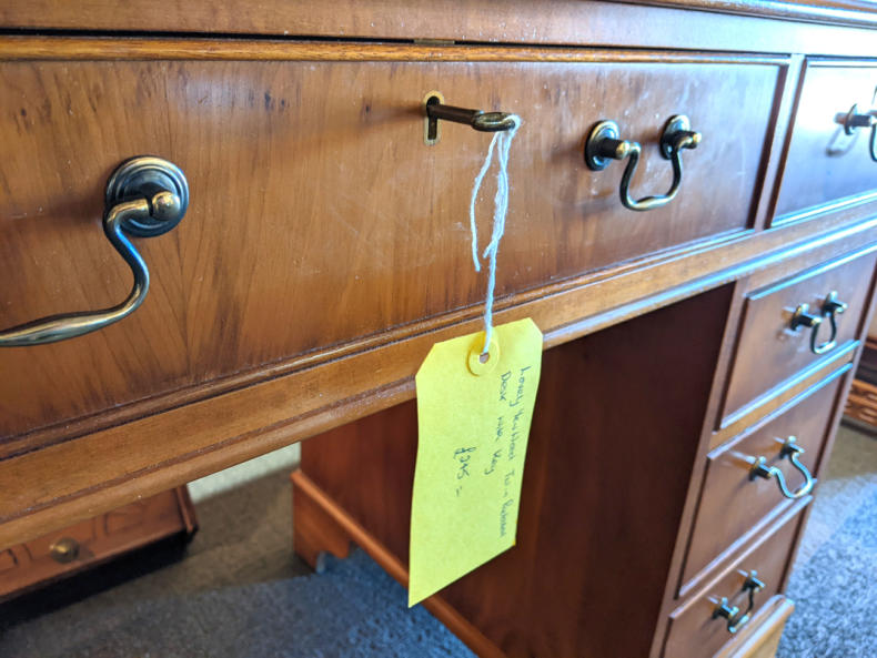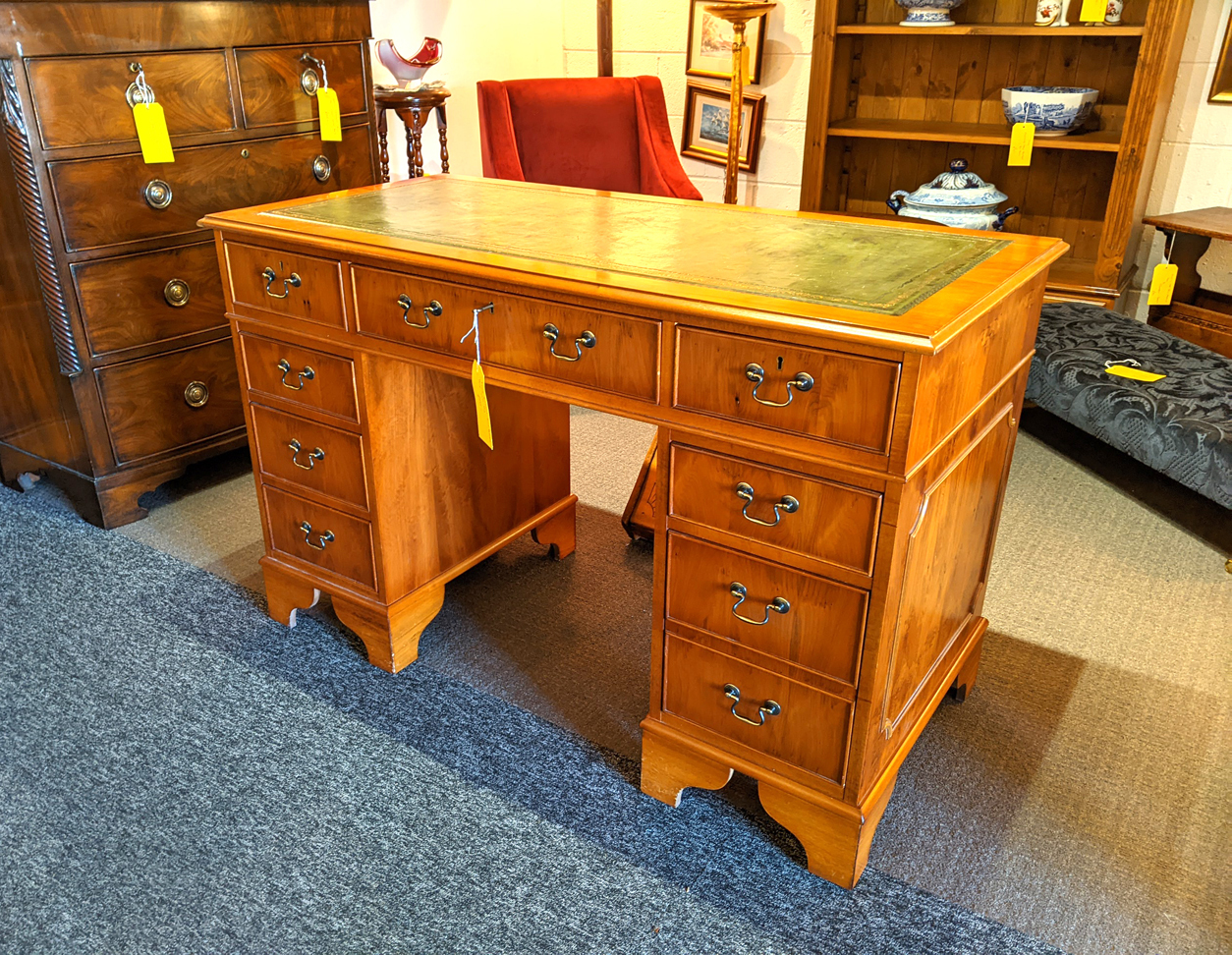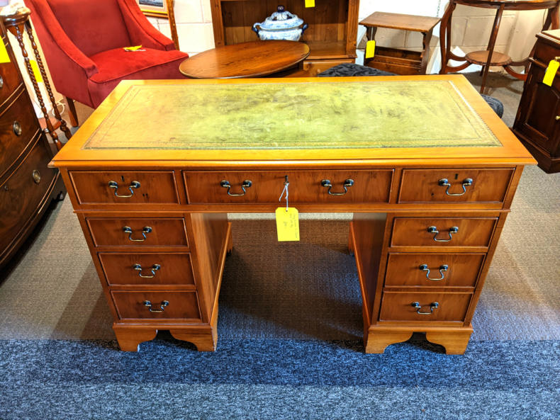 Lovely Yew Wood Twin Pedestal Desk with Key
