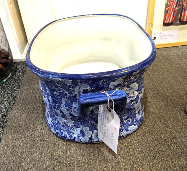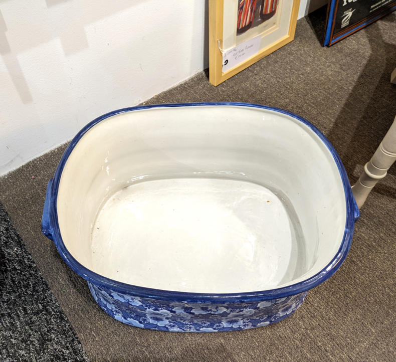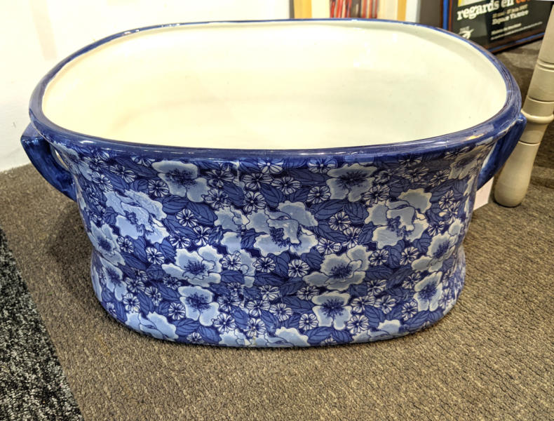 Large Vintage Blue & White Footbath Planter