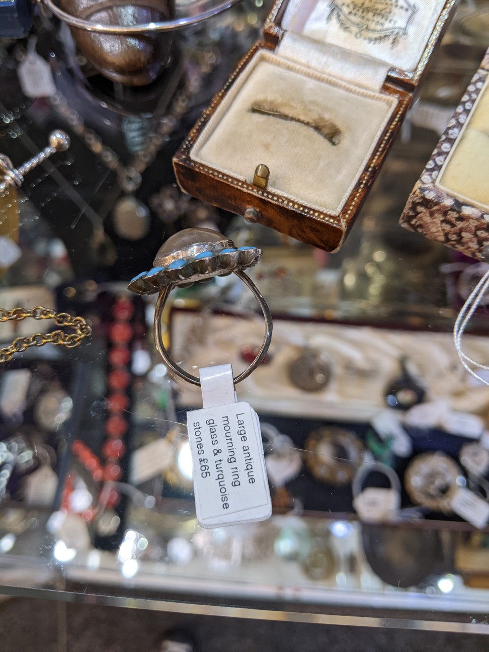 Large Antique Glass & Turquoise Ring