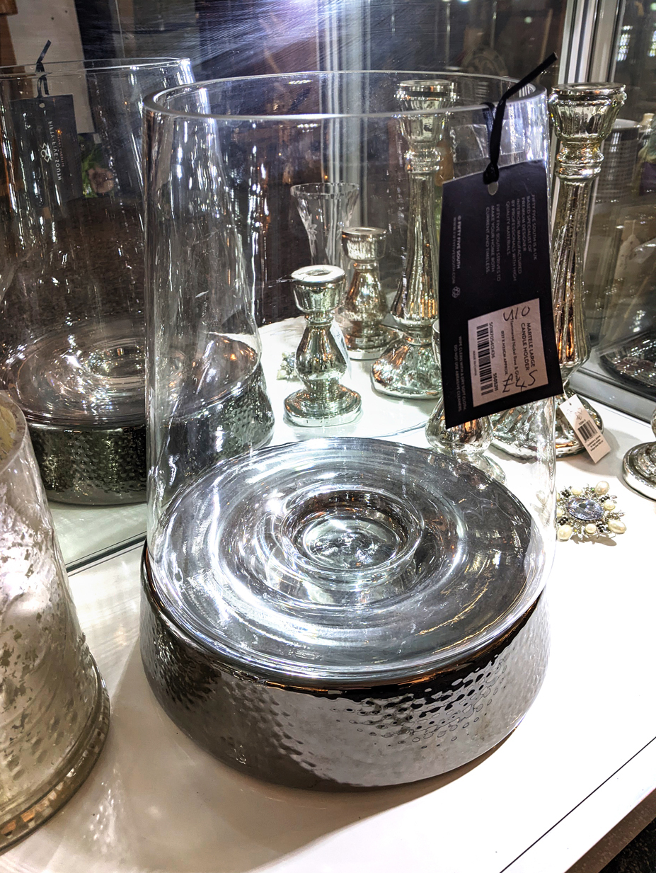 Hammered Nickel and Glass Candle Holder