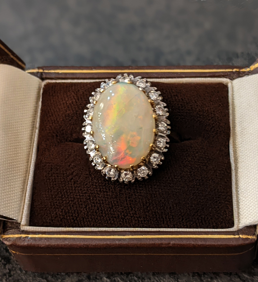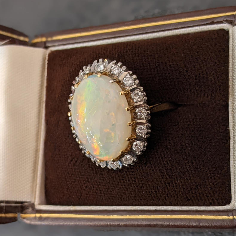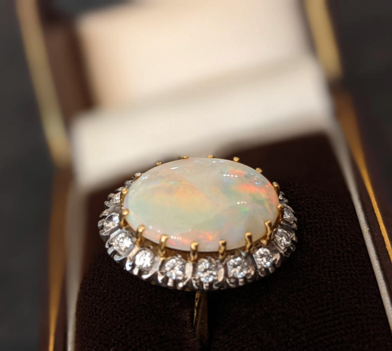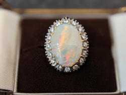 18ct Gold Antique Opal & Diamond Ring, 0.48ct in Diamonds and 7.9ct Opal